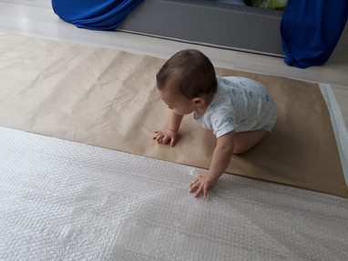 Nesta última semana, descobriram também o “liso e o rugoso”, divertindo-se ao engatinharem sobre o plástico bolha e o papel craft. Exploraram estas novas texturas através de bandejas e caixas de ovos. Tiveram momentos de relaxamento no gramado, com bolinhas lisas e outras texturizadas. Receberam até mesmo uma deliciosa massagem relaxante cheia de carinho! Encontraram estas texturas nas frutas do dia a dia, como na melancia, mamão, melão, maçã e laranja. E, não poderiam deixar de experimentá-las. Que delícia!
