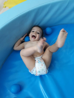 Agora, com a piscina de bolinhas totalmente azul dentro da nossa sala, os pequenos fizeram a festa. Adoraram a novidade!