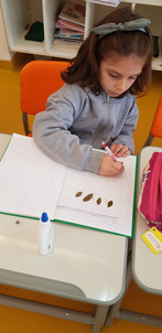 A Matemática esteve em vários momentos de nossa rotina, com resolução de problemas, grafias dos números, contagem dos decimais e estudo do 100 board. Mas, sem dúvida, o que as crianças mais gostaram foi praticar o conceito de soma através da pontuação de um jogo “ Bola ao Cesto", jogado em três partidas diferentes, com os mesmos times, onde a pontuação de cada jogador foi anotada e ao final de todas as partidas verificou-se a soma total de pontos e o time vencedor. Foi realmente um trabalho em equipe!!!