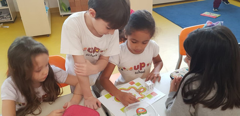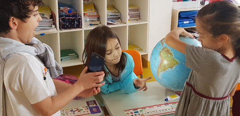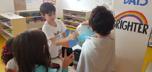 Ainda nos estudos sobre o Sistema Solar, descobriram como acontecem as mudanças de estações e se divertiram com um jogo de tabuleiro, além de fazerem experiências com o globo terrestre. E, com muito capricho e entusiasmo, terminaram o “Solar System Booklet”, onde registraram as informações que mais agradaram a eles sobre cada um dos planetas.