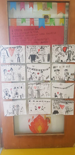 Além dos ensaios para a Festa Junina, as crianças estudaram sobre a História da Festa Junina, verificaram no mapa as origens da festa e pesquisaram no dicionário algumas palavras relacionadas ao tema. Para decorar nossa escola, escreveram rimas e fizeram desenhos incríveis.