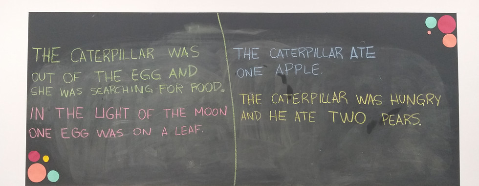 Dentro da nossa proposta de letramento, essa semana o uP5 concluiu sua jornada no universo do livro The Very Hungry Caterpillar, escrito por Eric Carle. Nas últimas semanas, exploramos diversas camadas da linguagem para brincarmos com a história. Exploramos a língua escrita através do estudo da estrutura do enredo, das palavras, das letras que compõem essas palavras e por fim pela reescrita da história. A oralidade foi parte de todo esse processo, pois não existe escrita sem oralidade e em todos os momentos que analisamos as palavras praticamos a fluência no inglês.