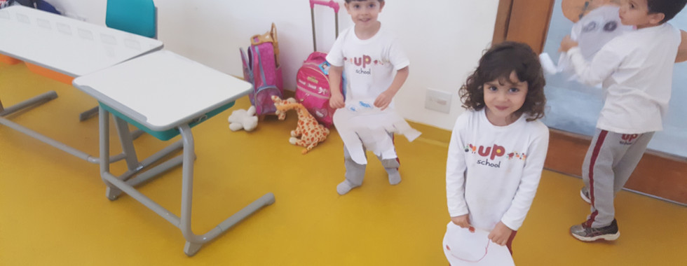 Esta semana vimos a história de Elmer: The Elephant. A história trata de sentimentos, a vontade de pertencer a um grupo e como todos se beneficiam do respeito às diferenças e peculiaridades de cada um. Além do background socioemocional, aproveitamos para trabalhar linguagem por meio do reconhecimento de vogais e o traçado das letras, a coordenação e arte na confecção da máscara.